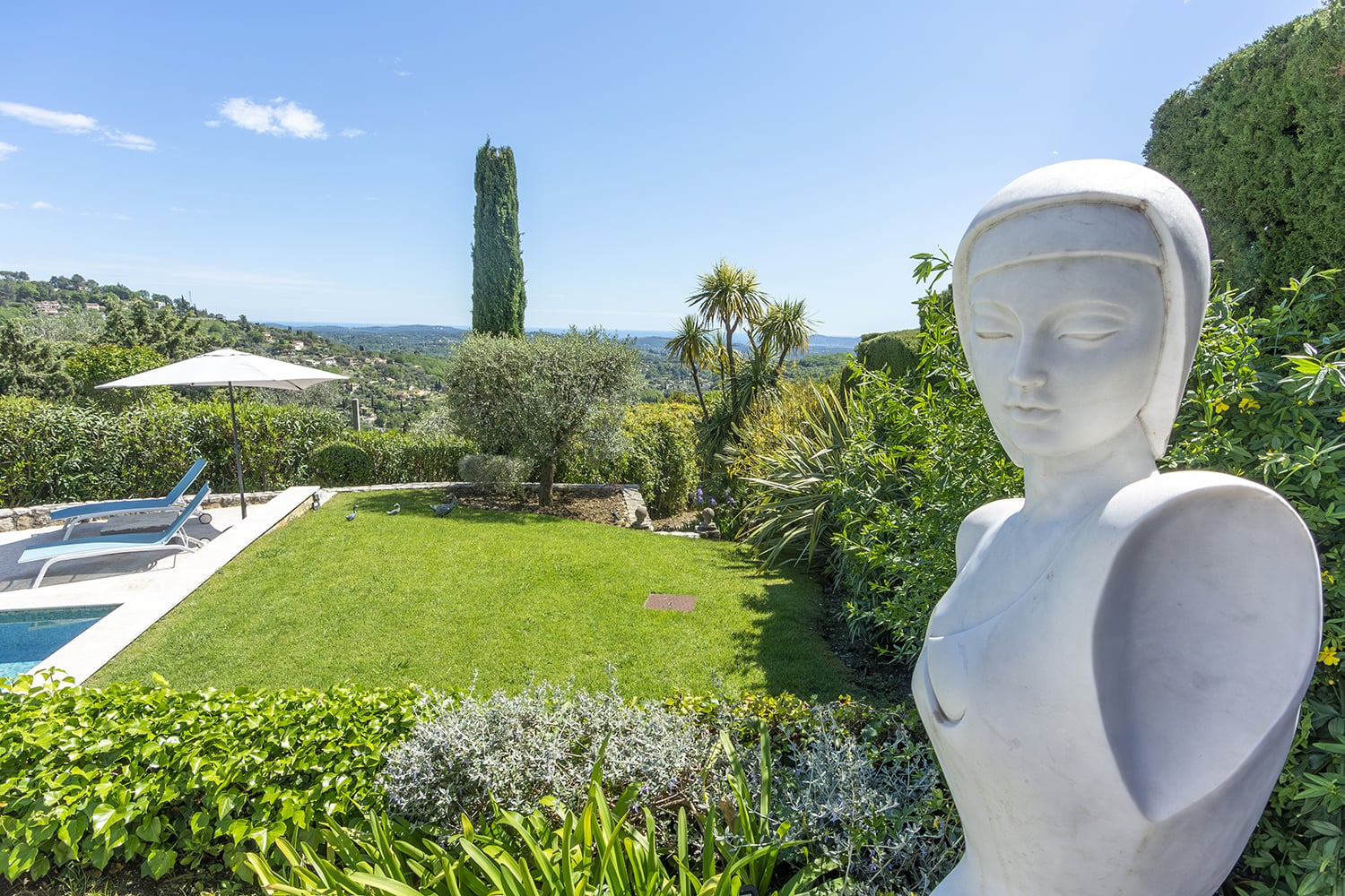 Approximately 1,000 m² of private, terraced gardens with lawns, fruit and palm trees and Mediterranean plants and flowers.