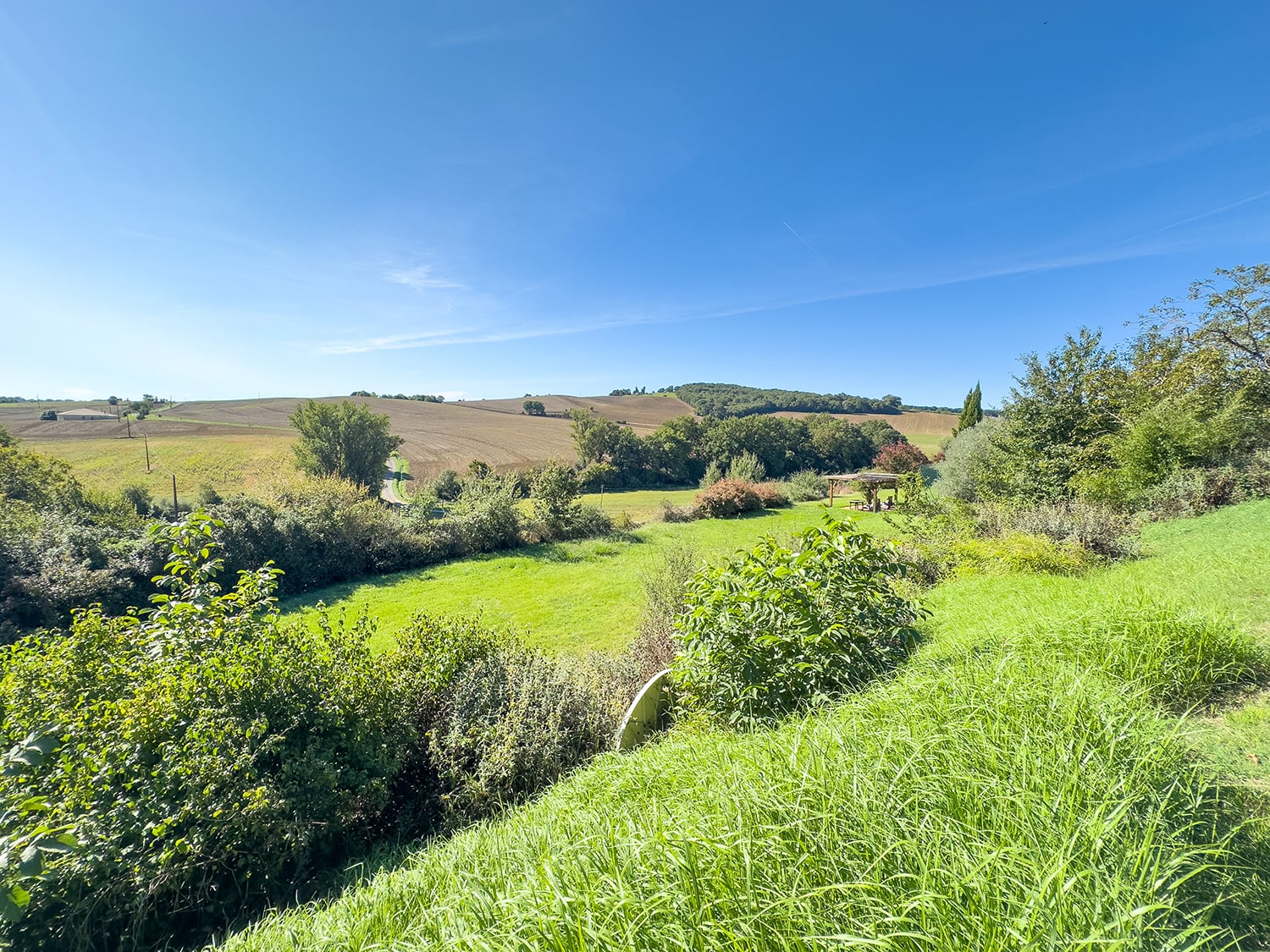 The most Westerly region of the 'Midi-Pyrénées', a vast and impressive mountain range, which can be seen from the top of the drive. The region is devoted to a agriculture, with rolling hills, shallow valleys and fields filled by turn with wheat, maize and sunflowers.