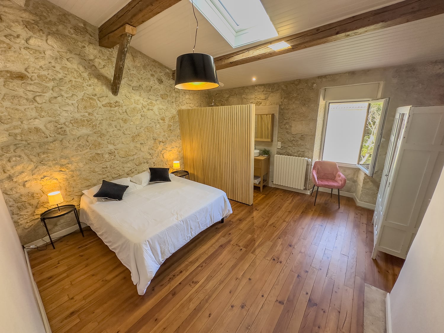 The property is situated in a tiny hamlet in open countryside on the edge of the Dordogne River, between Libourne and Bordeaux