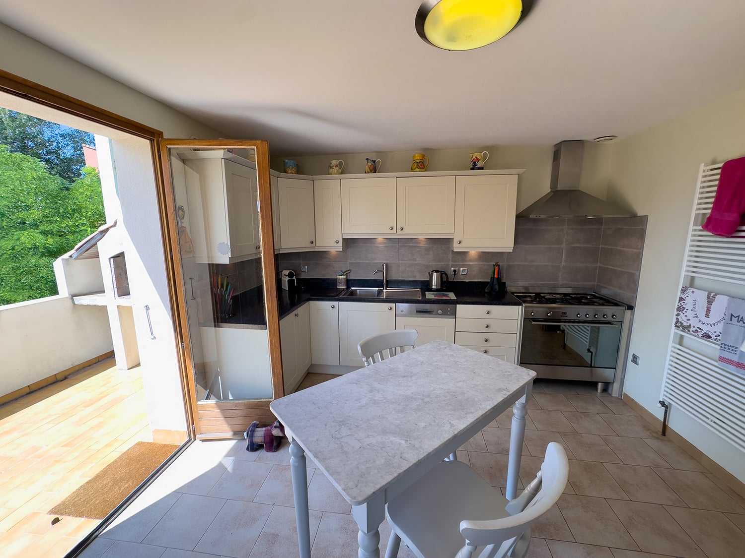 2 doors to 1st floor wrap-around dining terrace with BBQ, table and chairs.