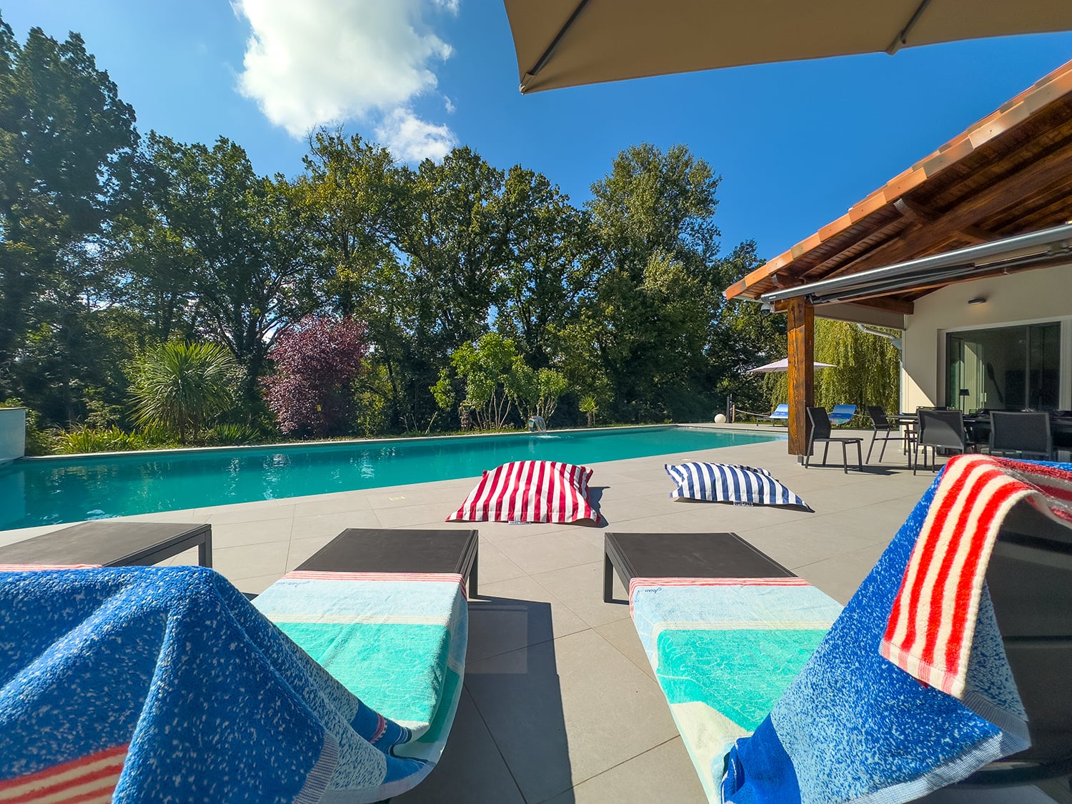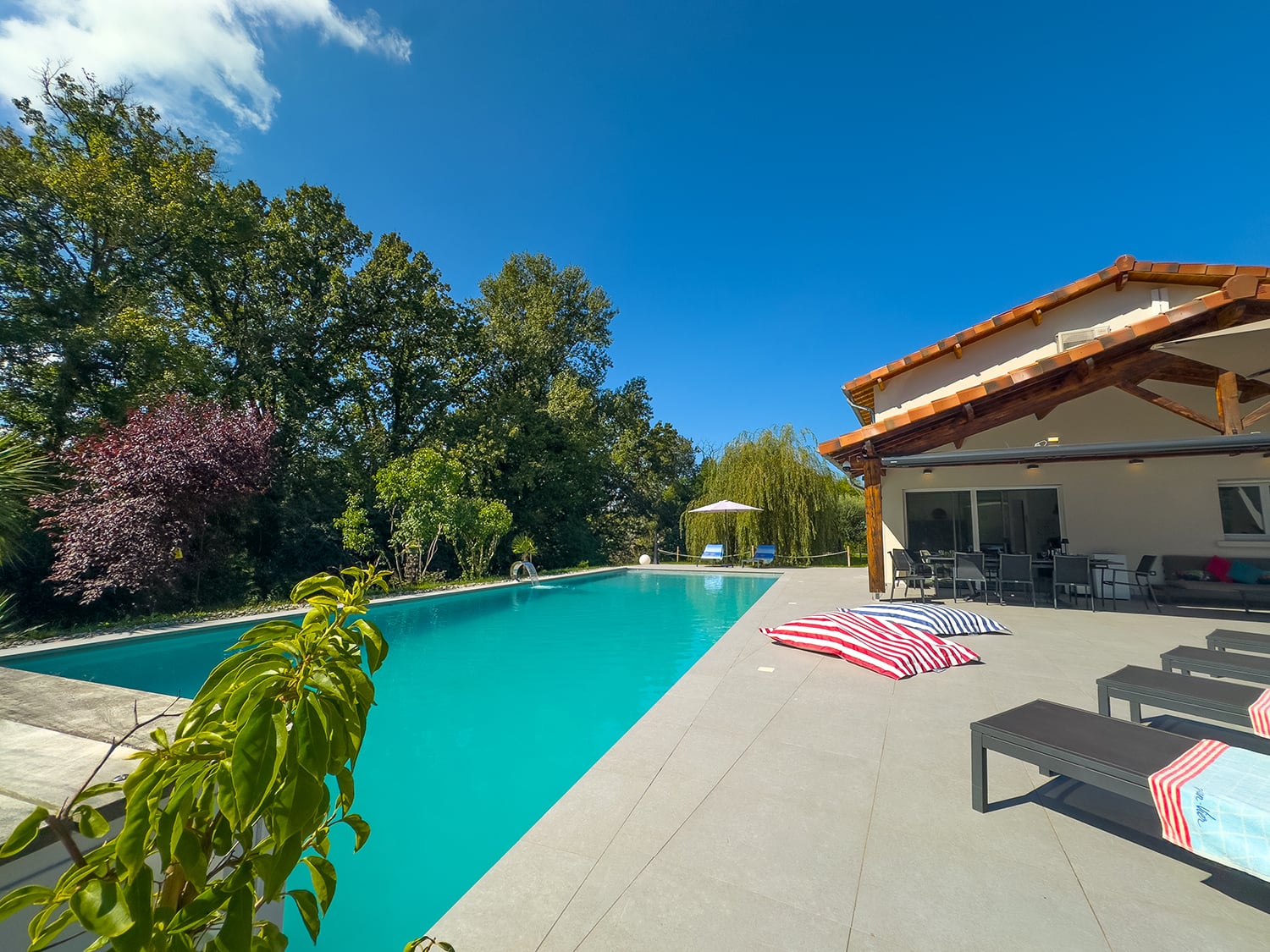 Just back from a week's stay at Villa La Baronne. I understand this is a newly renovated property and it is very clear that no expense has been spared on the project. It is a large property that could suit more than one family or a group of friends and can sleep up to 14 people. Every detail has been lovingly considered and stylishly executed. Bedrooms are beautifully appointed with elegant furnishings and comfortable beds. The house has been designed to offer endless activities both inside and out. We were lucky with the weather for October and so were able to use the huge and stunning Swimming Pool, the Jacuzzi, Pétanque pitch and the specially installed Croquet Lawn. In the evening, we took advantage of the cinema and games room, playing pool, table football, ping pong, chess and darts. A brilliant house for families with teens! There is even a huge TV, especially for use with games consoles. The house has a beautiful kitchen, fully equipped with every gadget you could require. Although we didn't use it, there is also a BBQ for evenings on the huge terrace. The property is situated on the banks of the River Tarn and is surrounded by beautiful mature trees and a large garden. It was a very quick and easy drive from the airport and local amenities for food shopping. The local village, a ten-minute walk away, was very quiet but does have a pleasant local restaurant and within a few minutes by car you can access larger towns. In less than 40 minutes we reached Toulouse centre and the beautiful town of Albi and I gather there are many other attractions within an hour from the property. Although we were briefly aware of a party at the neighbouring property, we found the location very peaceful, with lovely dark skies at night for star gazing. The Wi-Fi was extremely good and there is plenty of parking. All in all we would highly recommend this property, which is of the highest quality. Our thanks to the charming hosts.
