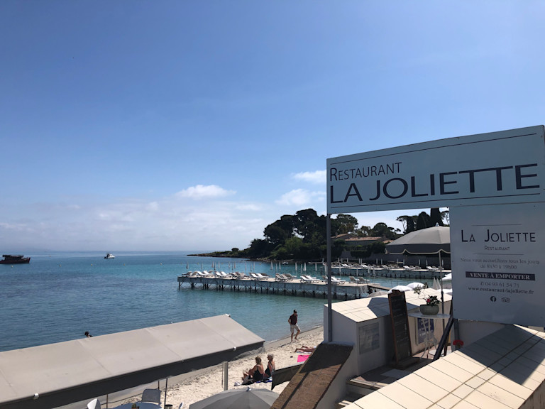 Sur le côté Est de la presqu'île du Cap d'Antibes se trouve une petite crique avec une jolie plage et deux restaurants en bord de mer avec vue panoramique sur la baie en direction de Nice et de l'Italie. C'est un endroit idéal pour profiter d'un excellent déjeuner, les bains de soleil et la natation!